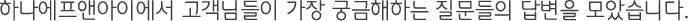 하나에프앤아이에서 고객님들이 가장 궁금해하는 질문들의 답변을 모았습니다.